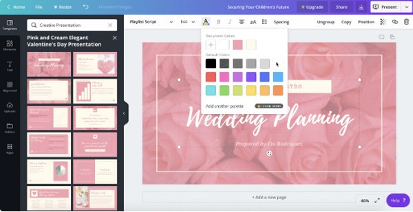 如果想要添加新文字,你可以點擊側(cè)面板的“文字”標簽。從 “添加標題”、 “添加副標題” 或 “添加少量正文文本” 選項中選擇,以在頁面上添加新的文字框。