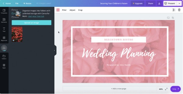 如果所選擇的設(shè)計帶有圖片,你可以進行編輯或添加更多內(nèi)容。你可以從我們的媒體庫中添加照片或插圖,或者可以上傳自己的圖片。