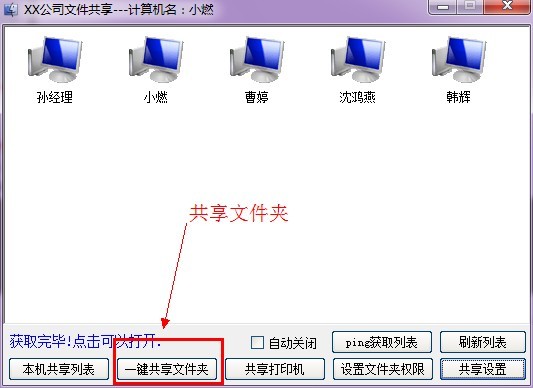 1、點(diǎn)擊一鍵共享文件夾。