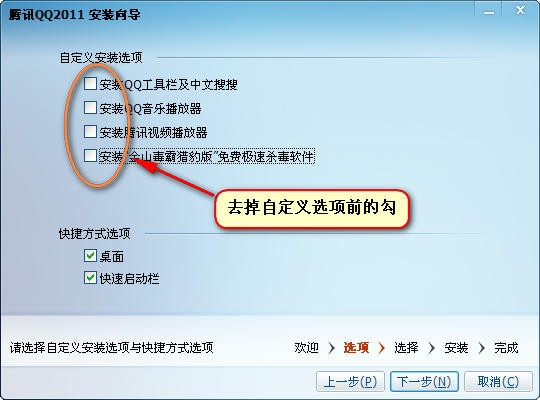 方法如圖:將不喜歡的產(chǎn)品,勾掉,小編我是只裝QQ的,其它的垃圾:),個人愛好。不是罵騰訊!