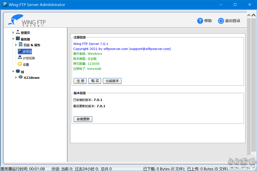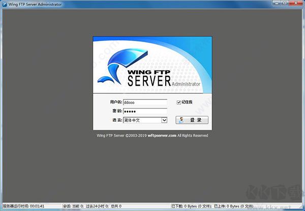 13、接下來(lái)運(yùn)行軟件,輸入安裝過(guò)程中設(shè)置的管理員賬戶,并登陸即可無(wú)限制永久免費(fèi)使用Wing FTP Server6.0.7了。