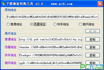 經(jīng)常下載文件的用戶都知道,在計算機中你會遇到的下載地址有:迅雷,快車,旋風(fēng),以及 Rayfile,BitComet 等地址,非常的雜亂,很多地址都只能用專屬的下載工具下載,此時你可以使用kkx分享的這款能將資源下載地址轉(zhuǎn)換成普通地址、迅雷地址、快車地址和旋風(fēng)地址,可以用其它工具下載,減少麻煩。