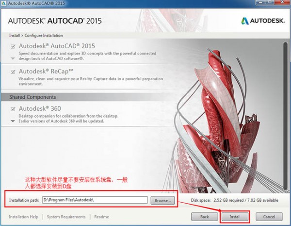 正式安裝CAD2015 32位英文版,點(diǎn)擊安裝按鈕(Install)