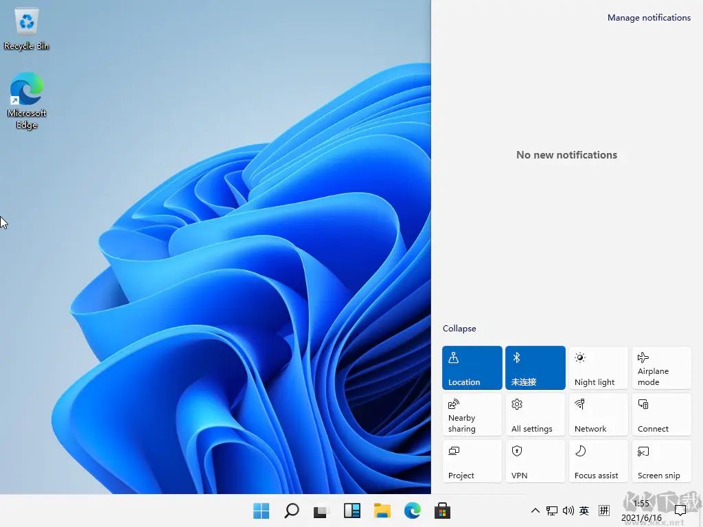 Win 11底部菜單欄最右側(cè)的通知中心也有了新變化,比如屏幕截圖圖標(biāo)上的曲線變成了直線,V -P-N改成了類似盾牌的圖標(biāo)。
