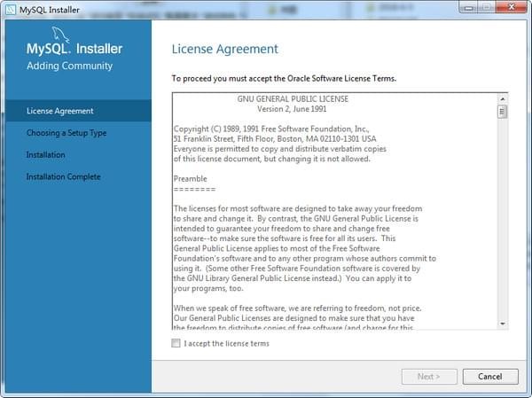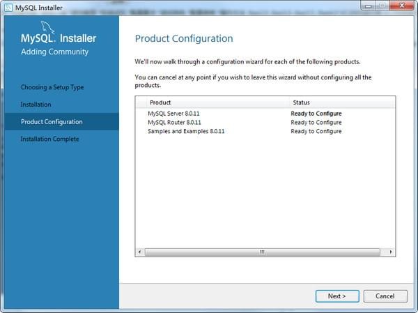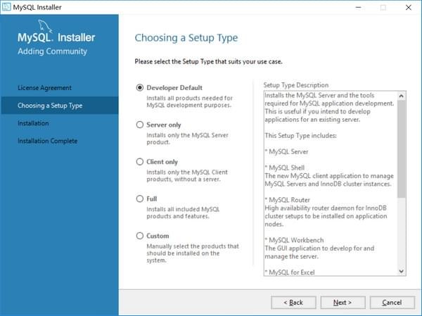 第一個選項(xiàng)包含了一些MySQL其他組件,如果只安裝MySQL數(shù)據(jù)庫,選擇第二項(xiàng)Server only就行。這里我直接選擇默認(rèn)的Developer Default