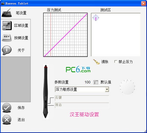 4、完成設(shè)置后保存一下就可以正常使用了,如果感覺寫字的時候太輕就可以寫字或太重才能寫字的話調(diào)一下壓力敏感設(shè)置即可! 使用漢王品牌手寫板的用戶快來獲取漢王手寫板萬能驅(qū)動進行安裝吧!