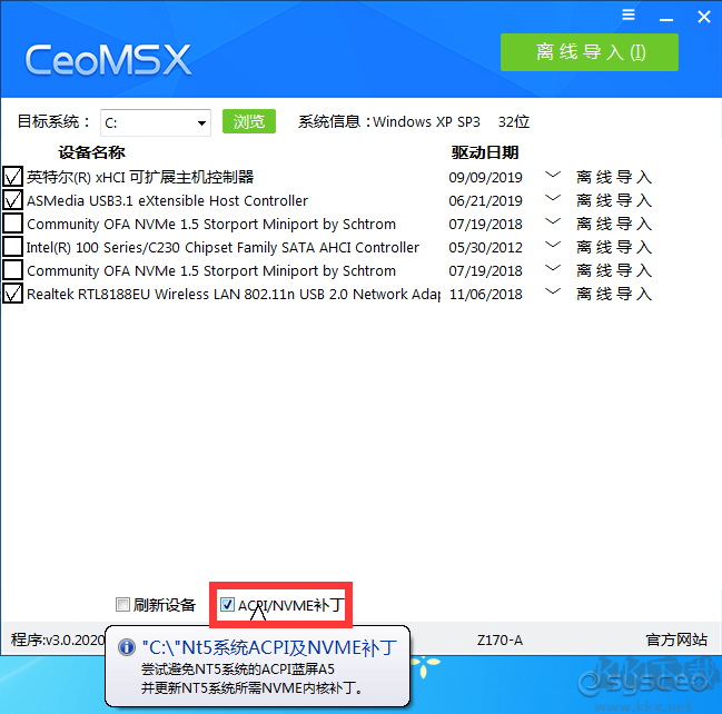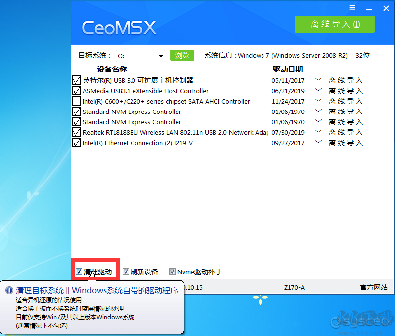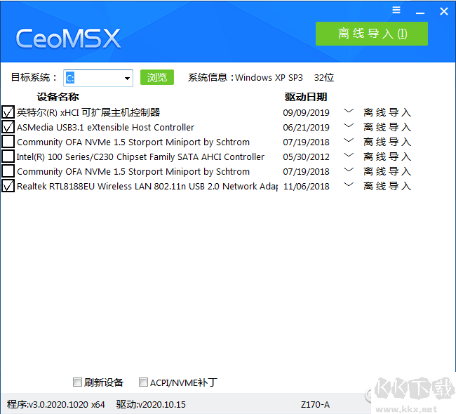 CeoMSX是由系統(tǒng)總裁發(fā)布的一款離線驅(qū)動導(dǎo)入工具,它支持磁盤控制器驅(qū)動IDE,AHCI,RAID,NVME,XHCI,RAID,以及USB3.0,3.1驅(qū)動程序的導(dǎo)入,是非常好的驅(qū)動解決方案,KK下載站為大家提供官方最新版本下載,有需要的朋友可以下載使用,長期更新。