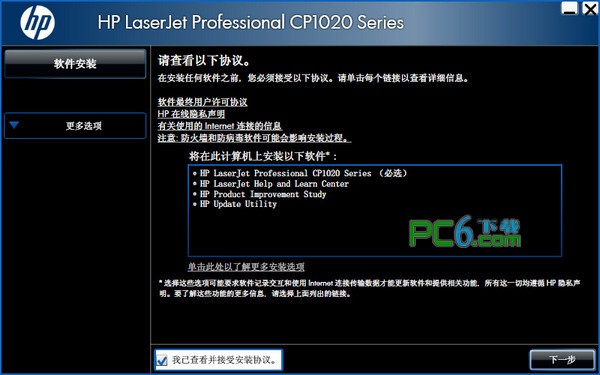 2、雙擊運行HP_LaserJet_CP1025_HB-pd-zhcn.exe開始安裝驅動;選擇安裝,點擊【確定】;