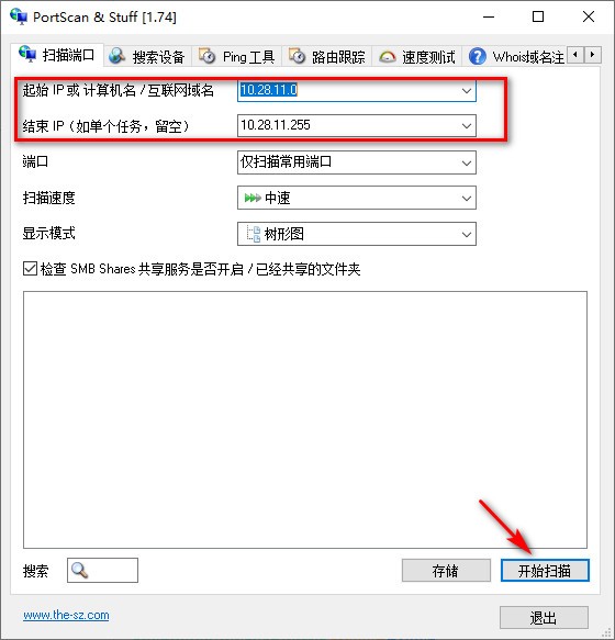 1、下載文件后,直接點(diǎn)擊運(yùn)行即可,設(shè)置好IP即可開(kāi)始掃描,見(jiàn)下圖所示:
