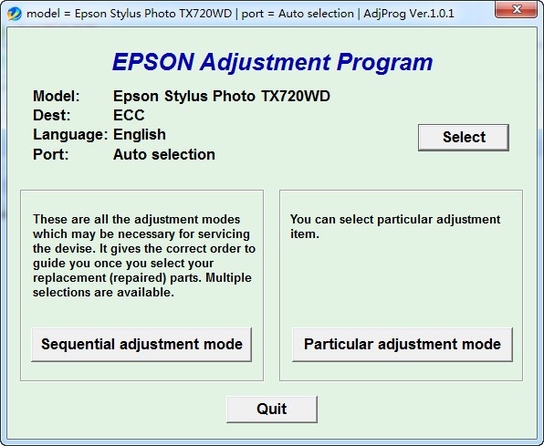 愛普生TX720WD清零軟件是由于愛普生官方推出的tx720wd打印機(jī)清零工具,這款打印機(jī)清零軟件能很好的解決壽命到期問題,歡迎使用TX720WD型號(hào)打印機(jī)的朋友遇到打印機(jī)故障的時(shí)候可以使用這款工具來對(duì)打印機(jī)進(jìn)行清零重置!