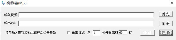3、操作簡(jiǎn)單,只需點(diǎn)擊瀏覽按鈕設(shè)置好輸入視頻后,點(diǎn)擊開(kāi)始,程序自動(dòng)在視頻目錄下轉(zhuǎn)換成原文件名的Mp3文件。