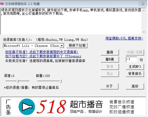 2、調(diào)一下語音速度和音量,選擇一下發(fā)音人,可試聽一下。