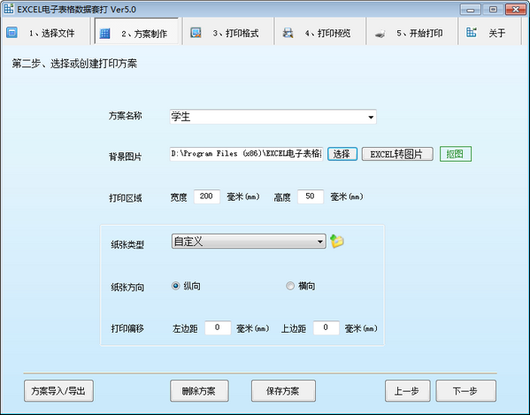 2)輸入或選擇已有方案名稱,方便多次打印選擇;