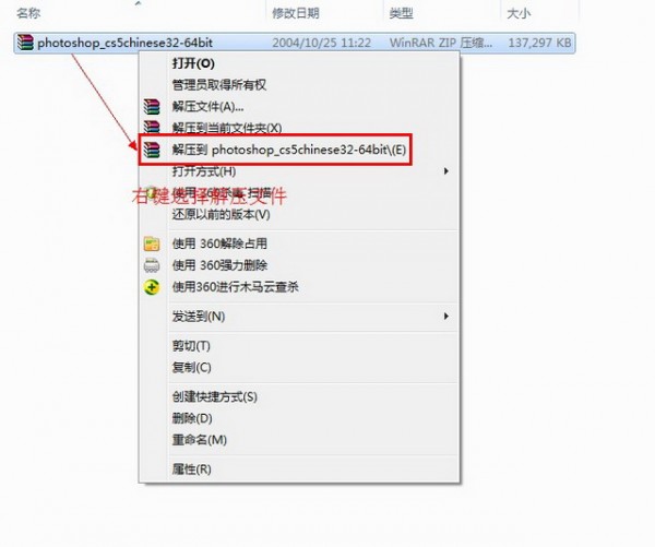 把我們下載的Photoshop cs5文件包右鍵選擇解壓文件。