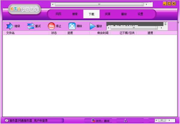 在下載版面可以看到你正在下載文件的狀態(tài)。KTV下載快車能夠同時(shí)在多個(gè)用戶處下載同一文件,從而加快下載速度,合理分配網(wǎng)絡(luò)資源,不至于經(jīng)常造成擁塞,比單點(diǎn)下載的軟件優(yōu)勝。在這里可以看到在每處的下載速度和進(jìn)度。如果顯示完成,表示已經(jīng)成功,文件已經(jīng)下載到硬盤上了,并且在資源版面可以該文件??吹饺绻@示“無(wú)法下載”,這表示文件不可下載。如果用戶都很繁忙(有太多的連接),就會(huì)顯示“對(duì)方繁忙”。