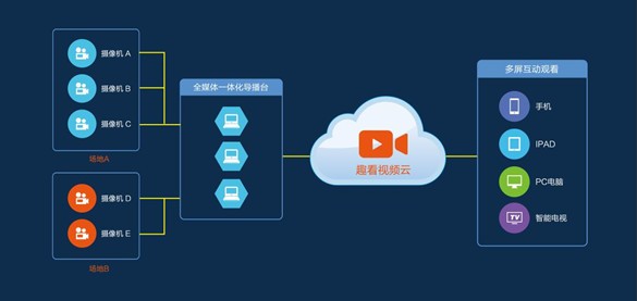 無(wú)論是同一場(chǎng)地內(nèi)不同角度的攝像機(jī)直播畫(huà)面,或是跨區(qū)域的不同場(chǎng)地的攝像機(jī)直播畫(huà)面,都能使用全媒體導(dǎo)播臺(tái)進(jìn)行畫(huà)面切換、輸出。