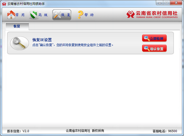 云南農(nóng)信網(wǎng)銀助手可以會修改你的ie設(shè)置,點擊立即檢測可以查詢您的ie設(shè)置是否被安全組件修改。