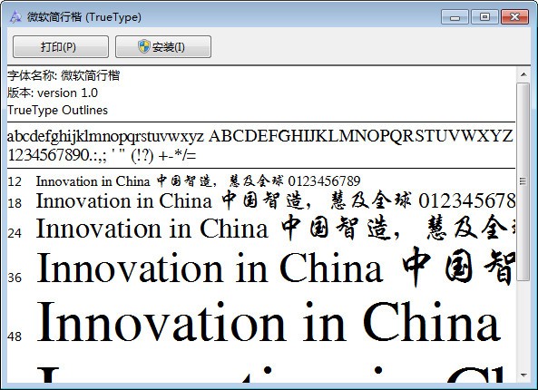 微軟簡行楷字體 v1.0官方版4.3M