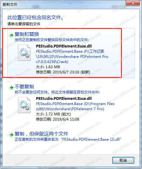 2、先安裝原版,然后把補丁放到軟件的安裝目錄中。小編安裝的在“D:\Program Files (x86)\Wondershare\PDFelement 7 Pro”。