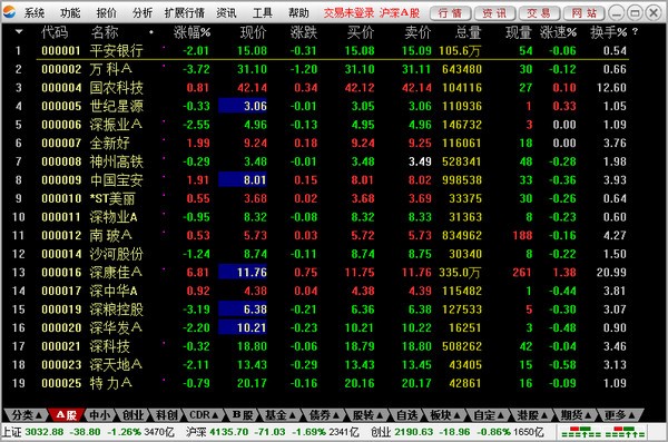 菜單欄位于系統(tǒng)圖片的左上角,包括系統(tǒng)、功能、報(bào)價(jià)、分析、信息、香港股票期貨、工具、幫助等八個(gè)欄目。同時(shí),按下Alt和菜單旁邊的字母,彈出下拉列表,按下相應(yīng)的字母鍵選擇功能。
