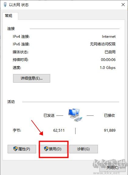 2、然后再斷開網(wǎng)絡(luò)連接或者是禁用網(wǎng)絡(luò);