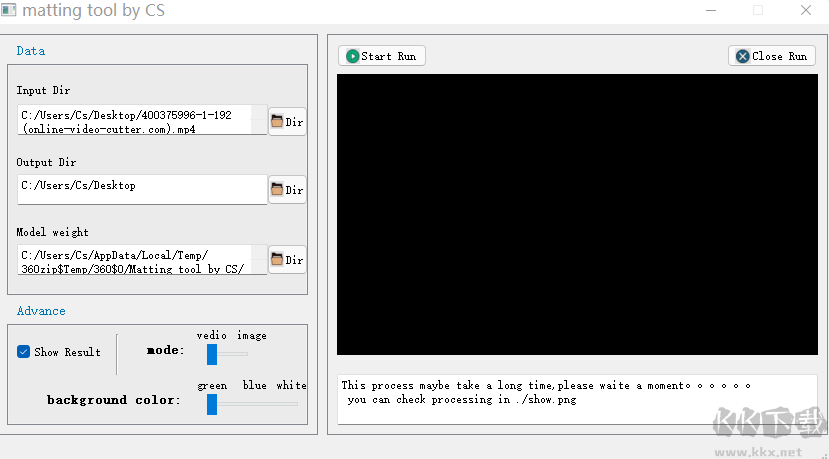 Show Result:可以實(shí)時顯示處理過程(但由于顯示控件問題,彈出顯示了),但是由于cv2顯示會影響處理速度,可以考慮去掉勾勾;