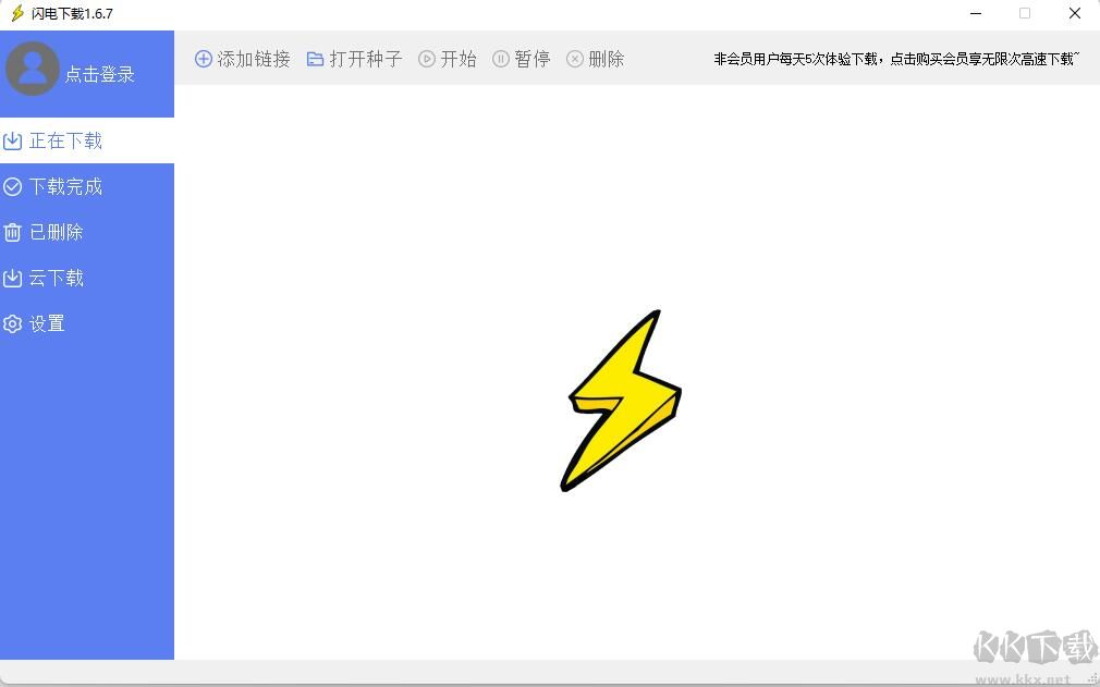 啟動閃電下載電腦版本,您會發(fā)現(xiàn)它的界面非常簡單,沒有任何廣告。頂部有幾個功能按鈕,底部顯示下載路徑。單擊以打開路徑文件夾。