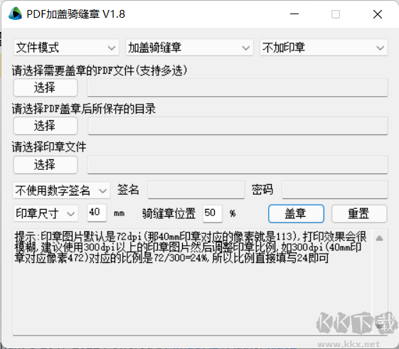 分享一款非常不錯(cuò)的PDF加蓋騎縫章的小工具,這款工具免費(fèi),無(wú)需安裝,使用簡(jiǎn)單!加蓋騎縫章后會(huì)自動(dòng)在文件名后添加“_QFZ”,有需要PDF加蓋騎縫章的朋友可以下載試試。這樣子PDF打印出來(lái)就有騎縫章了。