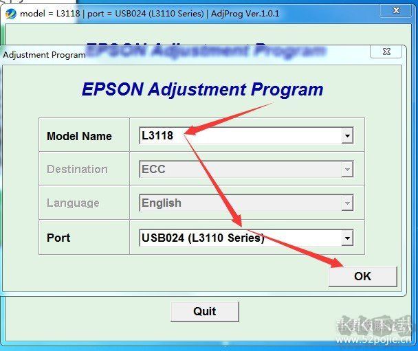 愛(ài)普生打印機(jī)清零軟件使用步驟: