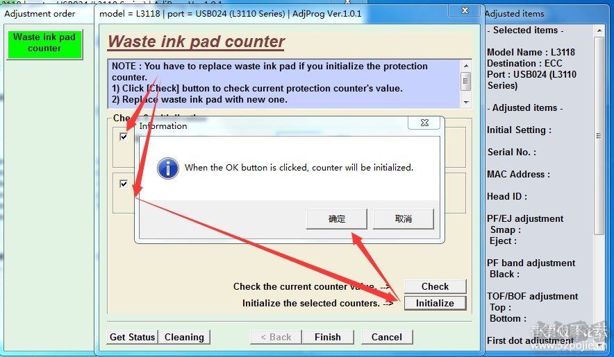 3.選擇[Waste ink pad counter]然后點(diǎn)[OK]. 如下圖。