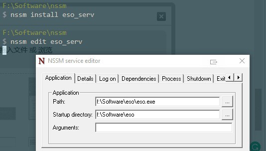 1)圖形界面: nssm edit 見下圖所示: