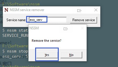 1)彈出確認窗口:nssm remove [] 見下圖所示: