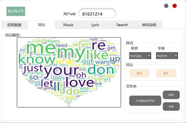 163MusicSA是一款可以幫助用戶獲取聽歌排行信息的小工具,獲取后即可快速生成相應(yīng)的詞云,幫助你查看自己最喜歡聽的歌出現(xiàn)最多的歌詞是什么,聽得最多的歌手是什么,所有數(shù)據(jù)都在本地,不會(huì)泄露個(gè)人隱私!