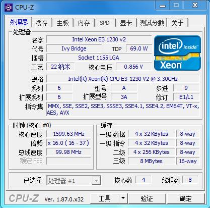 這里的核心速度顯示的是當前CPU運行的核心頻率,為什么會變,因為有英特爾處理器支持EIST增強型節(jié)能技術,主頻隨著負載高低會有變動。這也能讓你的電腦更加省電。