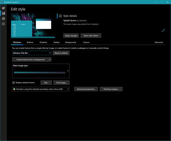 采用自帶的款式在線編輯器,你可以輕輕松松創(chuàng)建和分享自己的款式。一個Curtains風格能夠改變一切光和暗模式能夠改變的物品,包含開始按鈕,標題欄按鍵和標題欄上色。它還適用調節(jié)漸變色、黑影不透明度及其WindowsGUI里的別的數(shù)百種小元素。