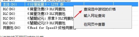 4、選擇需要查詢的游戲,右擊,點擊“查詢選中的游戲價格”,按住ctrl或shift可多選查詢