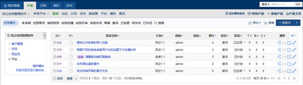 1. 產(chǎn)品管理:包括產(chǎn)品、需求、計劃、發(fā)布、路線圖等功能。