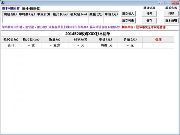1、本軟件僅適用于計算檢尺長2~10米,檢尺徑4CM以上和單支/元的計算;