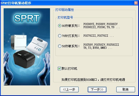 用戶在安裝的時候要選擇適合自己機(jī)型的驅(qū)動,以及打印端口,本安裝程序有USB端口自動識別功能。針式的機(jī)器需要選擇紙寬,支持76毫米/57毫米紙寬