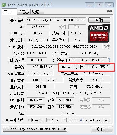 可以使用GPU-Z軟件 運(yùn)行后,在主界面就可以看到支持的DX信息了。