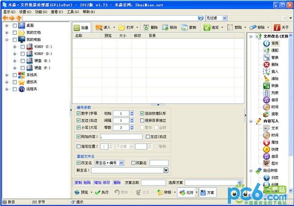 水淼文件批量處理器是一款非常強(qiáng)大好用的強(qiáng)大綜合工具,水淼文件批量處理器包括十幾種方式批量重命名文件,如:批量修改文件內(nèi)容、屬性、時(shí)間、快捷方式信息、音樂標(biāo)簽,批量創(chuàng)建文件和文件夾、智能歸檔,批量分割和合并文件,批量下載網(wǎng)絡(luò)圖片等等功能。