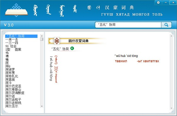 蒙科立固什詞典-漢蒙板一是款蒙語翻譯手機(jī)軟件,它的主要特征如下所示: