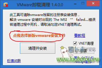 Vmware卸載清理是一款用來徹底清除vmware殘留的注冊表安裝信息,解決vmware安裝時出現(xiàn)的 The MSI “” failed....錯誤問題的有效解決工具,支持清理并安裝,由于蘿卜頭論壇的nkc3g4制作,感謝!