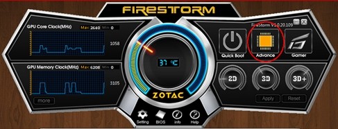 打開顯卡超頻軟件,選擇Advance
