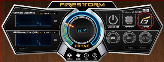1.索泰顯卡超頻軟件內(nèi)置有三種模式:2D,3D,3D+,三種模式有固定的頻率和電壓,玩家可自行選擇自己想要的模式,適合超頻新手使用,但因?yàn)楣潭ǖ念l率電壓和顯卡體質(zhì)等原因,并非所有顯卡都能穩(wěn)定運(yùn)行這三種模式。