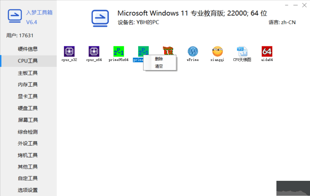 包括的硬件工具有很多,總數達到了 80 多款,例如 CPU 工具就存在 9 款,直接點擊任何一款工具就能運行,每款小工具都無需再次手動安裝,即點即用。