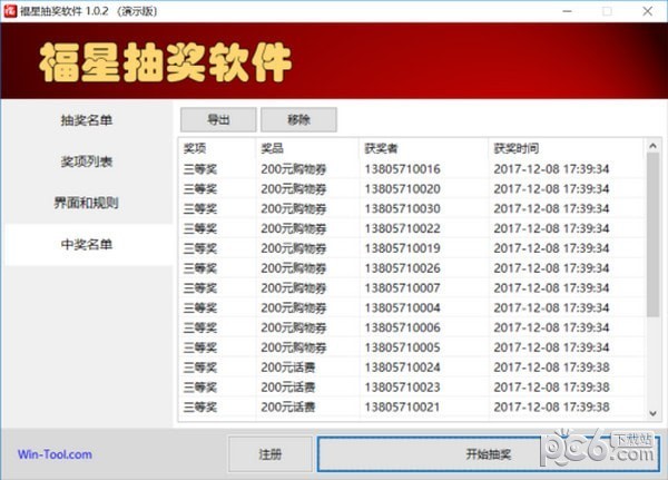 在中獎名單窗口中,您可以查看所有的已中獎信息,可以一鍵導出中獎名單到Excel文件。