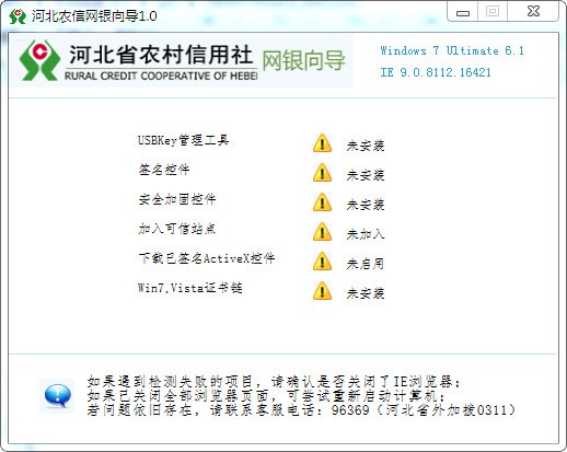 河北省農(nóng)村信用社網(wǎng)銀向?qū)Ь褪?ldquo;河北農(nóng)信網(wǎng)銀向?qū)?rdquo;,這是一款適用需要登錄河北農(nóng)村信用社的朋友們使用的一款網(wǎng)上銀行向?qū)к浖?,安裝該軟件后可以幫助你進行管理usbkey,安裝簽名控件,安裝安全加固控件,加入可信站點,下載已簽名的Activex控件以及證書!能指導(dǎo)您配置符合河北農(nóng)信網(wǎng)上銀行使用條件的電腦環(huán)境,從而正常輕松的進行登錄!