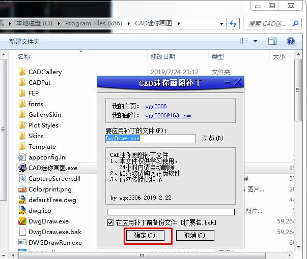 3、把破解補(bǔ)丁復(fù)制到CAD迷你畫圖文件夾中