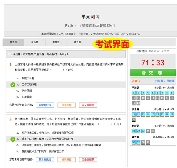 支持自動判卷和手工判卷。